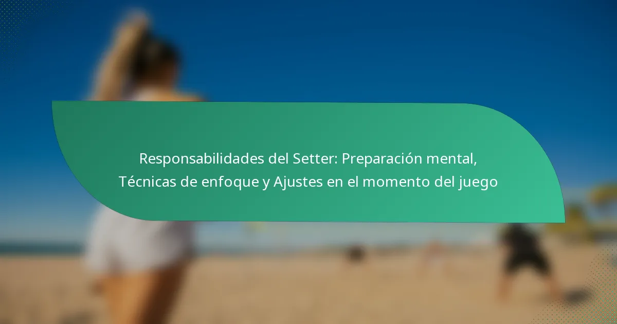El papel de un colocador en el voleibol va más allá de simplemente realizar colocaciones precisas; abarca la preparación mental, técnicas de enfoque y la capacidad de adaptarse durante los partidos. Una preparación mental efectiva genera confianza y reduce la ansiedad, permitiendo a los colocadores rendir bajo presión. Al emplear diversas técnicas de enfoque, los colocadores pueden mejorar su concentración y toma de decisiones, asegurándose de que permanezcan conscientes de la dinámica del juego y realicen ajustes oportunos según sea necesario.