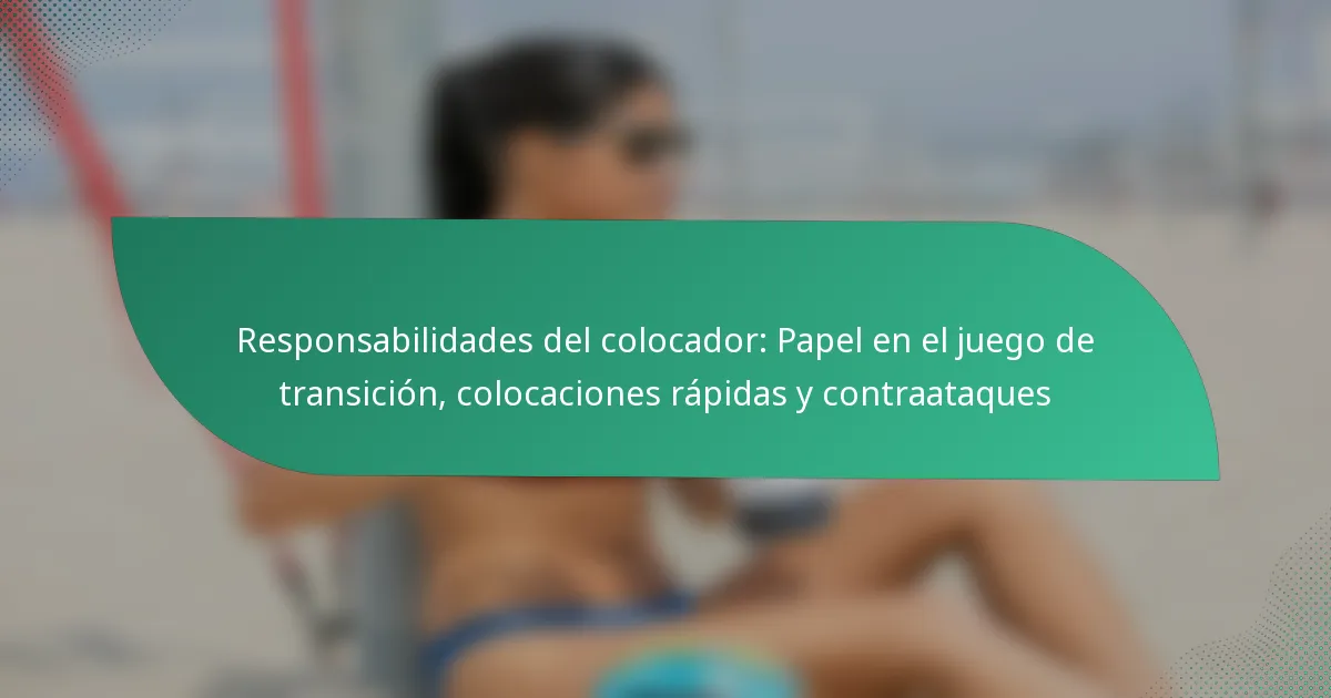 Las principales responsabilidades de un colocador en voleibol incluyen facilitar las jugadas ofensivas, tomar decisiones estratégicas y comunicarse efectivamente con los compañeros de equipo. Un colocador debe leer la dinámica del juego, adaptarse a diversas situaciones y ejecutar las estrategias del equipo mientras mantiene la compostura bajo presión.